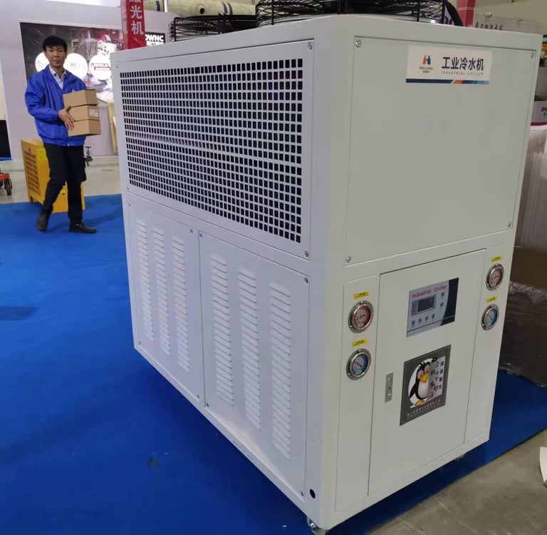 Industrial chillers are refrigeration equipment dedicated to the industrial field, used to provide coolant for equipment and systems in industrial production to maintain normal operating temperature. Industrial chillers can reduce the operating temperature of equipment and improve the efficiency and life of equipment by absorbing and discharging the surrounding heat. Industrial chillers usually adopt the principle of compressor refrigeration, including air cooling and water cooling, with the characteristics of rapid cooling, good stability and long service life. Industrial chillers are widely used in various industrial production scenarios such as injection molding machines, chemical equipment, printing equipment, laser equipment, etc. If you need to buy an industrial chiller or want to know more information, please feel free to ask us for a quote. We will provide professional services and product recommendations to provide you with high-quality industrial chillers to meet your cooling needs. Thank you!